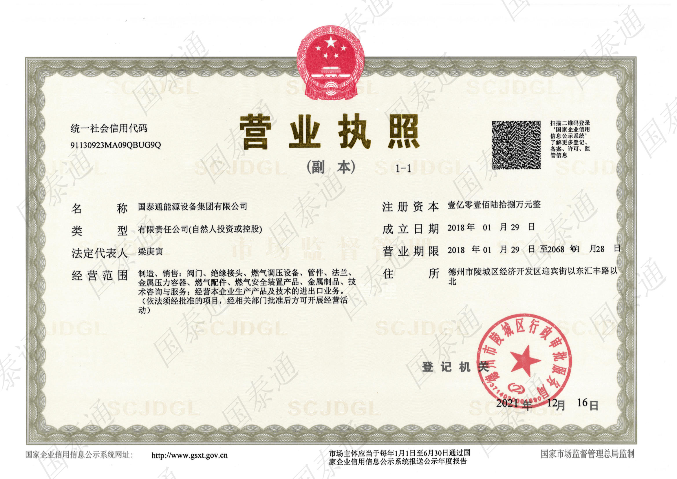國泰通能源設備集團有限公司是一家國家級高新技術企業(yè),專注于閥門和燃氣調壓輸配設備設計、研發(fā)、生產、銷售、服務于一體的系統(tǒng)集成解決方案服務商。公司成立于2011年,注冊資金10168萬元,擁有北京運營中心和山東生產中心兩大基地,北京運營中心主要承擔集團公司的戰(zhàn)略規(guī)劃發(fā)展,山東生產基地承擔集團公司產品研發(fā)、生產和銷售服務,集團公司山東生產基地占地面積5萬余平方米,總建筑面積3萬余平方米,有著現(xiàn)代化的廠房和辦公大樓。集團公司經(jīng)過十多年的茁壯發(fā)展,現(xiàn)擁有中、高級工程師27名,生產服務技術人員二百余人......